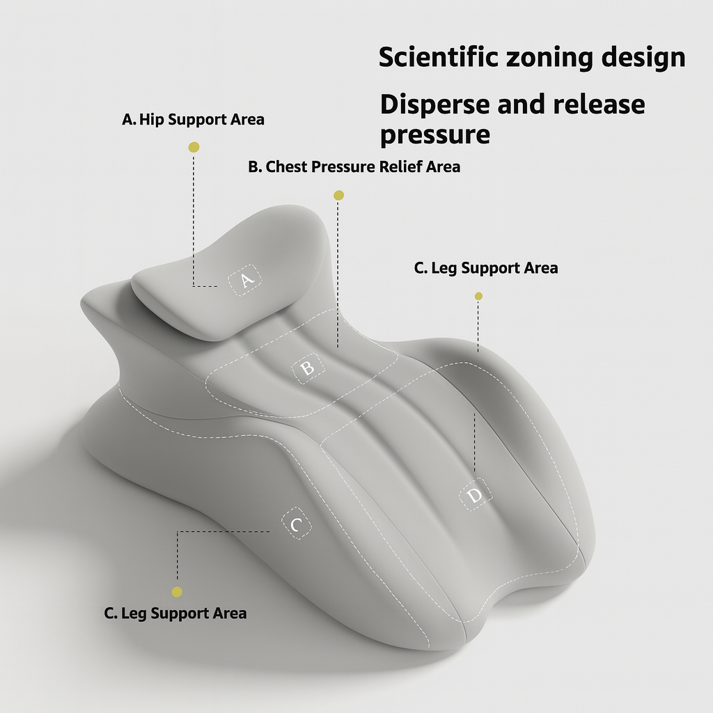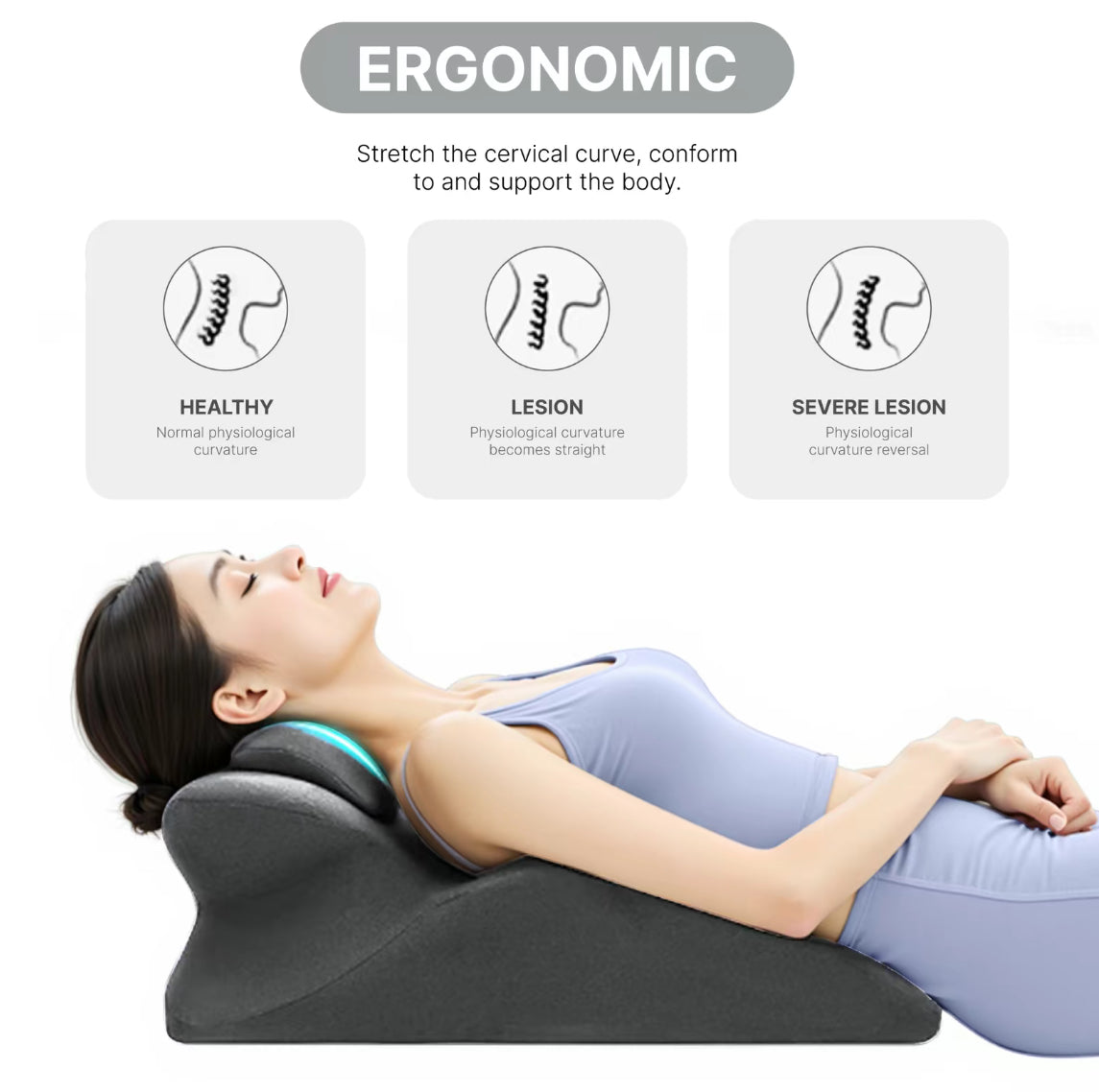 A versatile head, neck, and leg support system in one. Tailor the incline, height, and positioning to your body for targeted relief, whether you sleep on your back or side. Designed to release pressure from the lower back and heels.